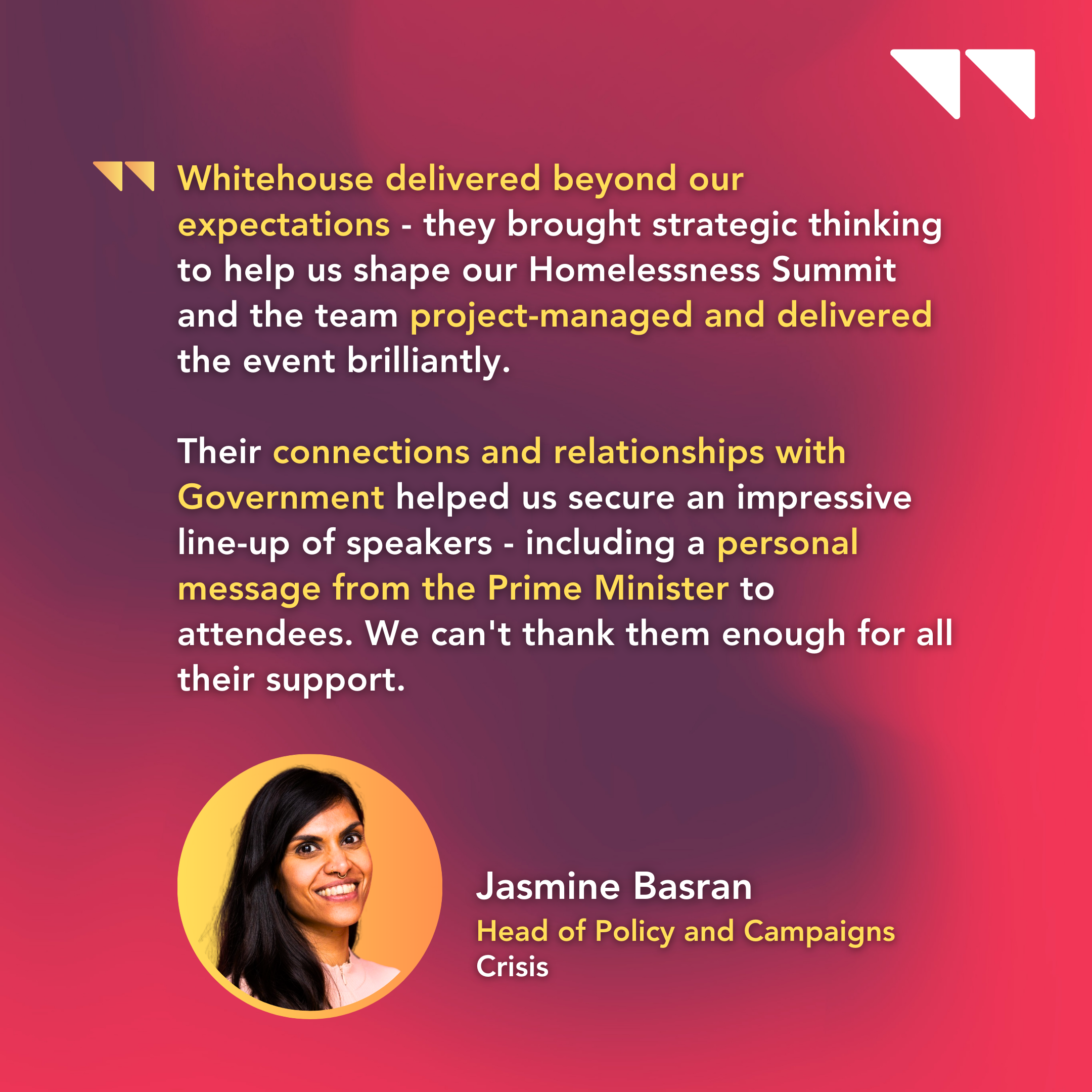 Crisis, the leading national charity for people experiencing homelessness, came to Whitehouse Communications for support in delivering an ambitious Summit. The aim was to bring together MPs, ministers, sector leaders, and those with lived experience to explore real solutions to end homelessness.